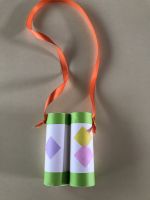 2歳児教室けやキッズのカリキュラム、双眼鏡作り。この活動は子どもたちが指先を使って折り紙をちぎる作業、その折り紙にのりを付け、双眼鏡へ貼りつける作業を行います。子どもたちに色紙をちぎってもらうと、...