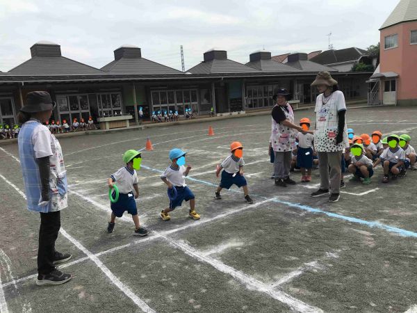お庭の使用時間を学年ごと分けて、先生とお友だちみんなで練習を重ねていきます。