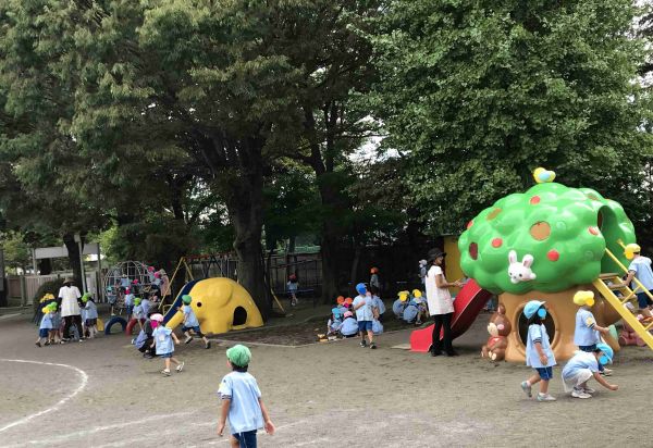 けやき幼稚園の運動会は、園の広いお庭で行います。