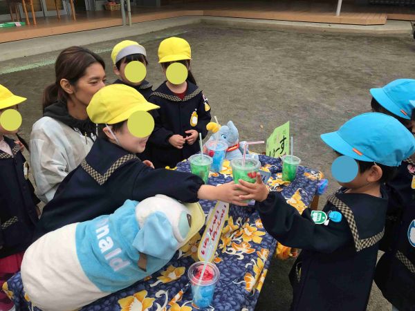 お顔がうつせないのが残念なほど大きな声で呼び込みをする年少さんたちです。
