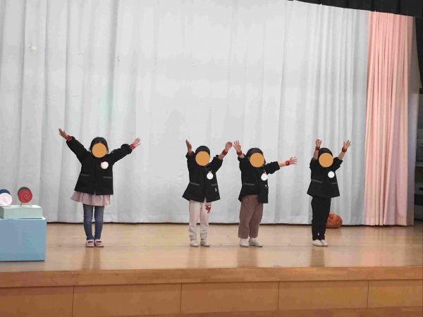 年中組はオペレッタ。役になり切り一つの物語を音に合わせて演じます。