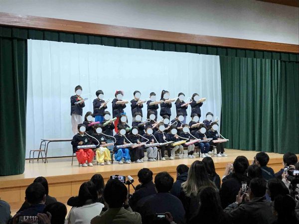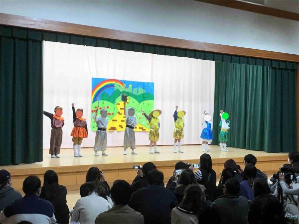 年長の部では台詞を言いつつ演じる劇の他に、メロディオン奏や合奏、合唱も披露しました。