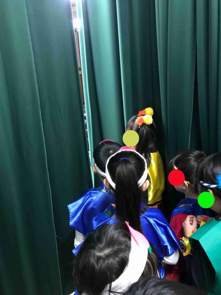 子どもたちはこの日の為に衣装を着て演じること、立ち位置、幕からの出入りなど、他のクラスのお友だちと交代でお客さんをしながら、人前で演じる練習をしてきました。