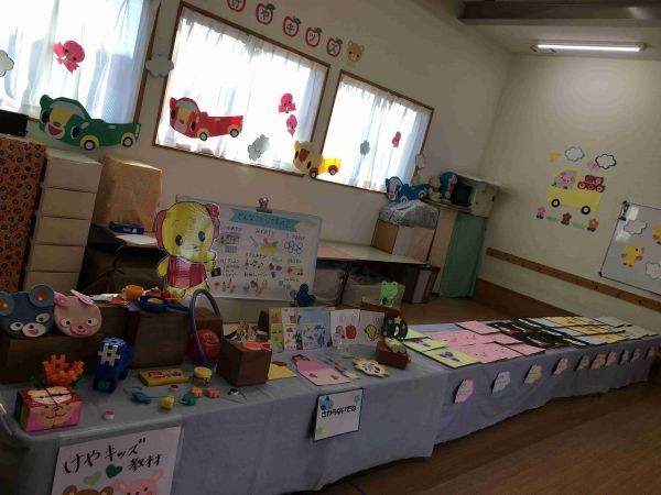 2歳児教室けやキッズでは、これまで取り組んできた制作帳や、日々遊んでいる遊具や保育の様子を展示。